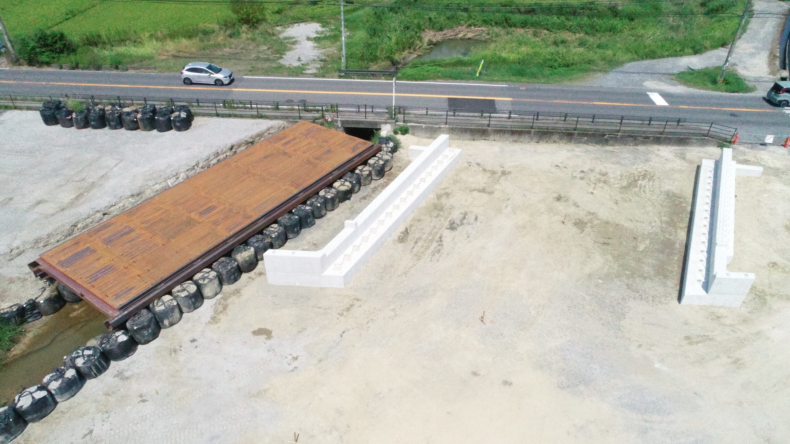 現場は大分県大分市横瀬地先で、橋台工(逆T式橋台)2基、場所打ち杭_1000 L=5.5m×10本、L=13.5m×10本、地盤改良工1式を行う工事でした。